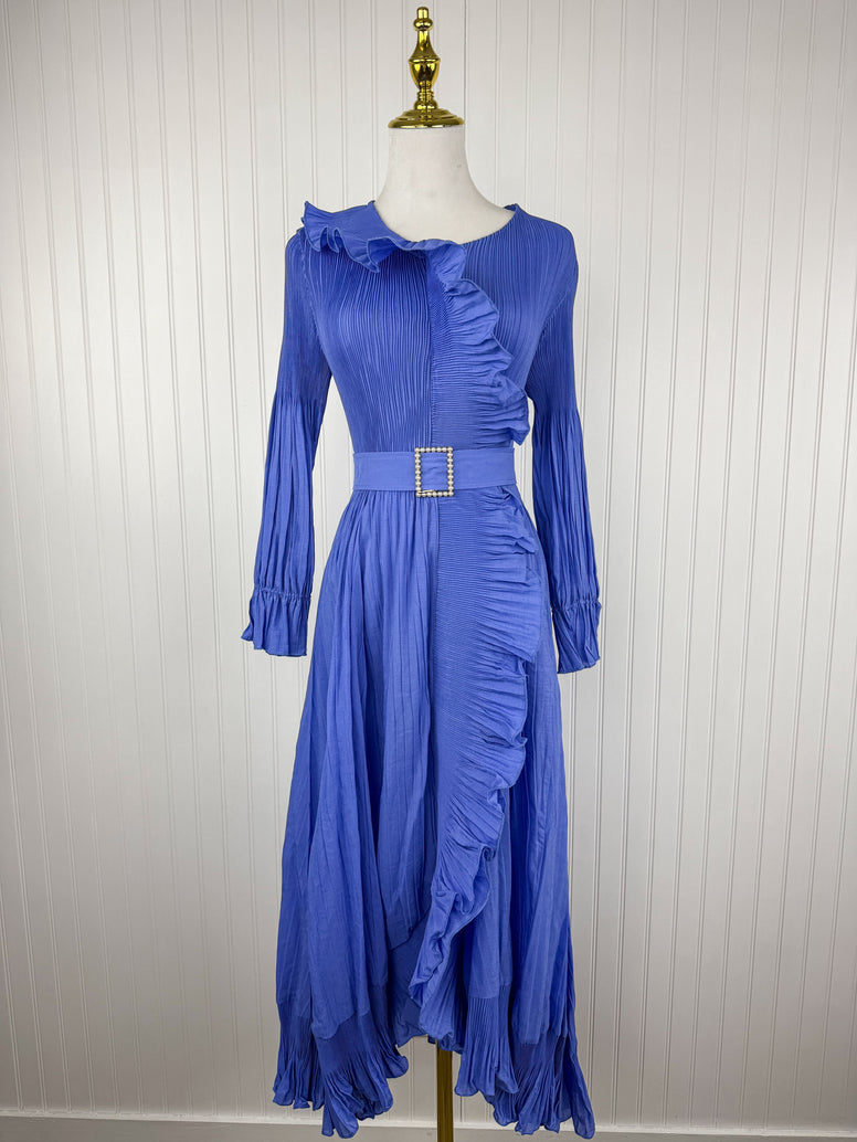 The Pearl Buckle Dress in Royal Periwinkle